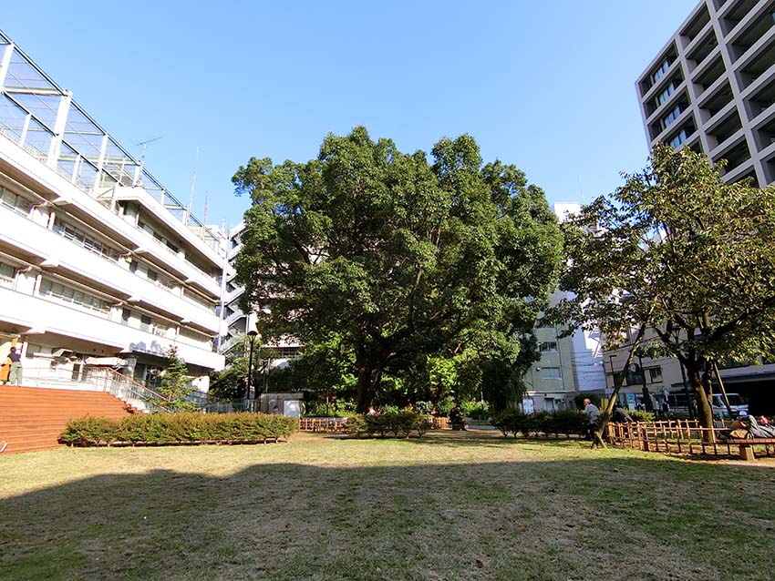 アーツ千代田3331の前にある「練成公園」のシンボルツリー<クスノキ>
