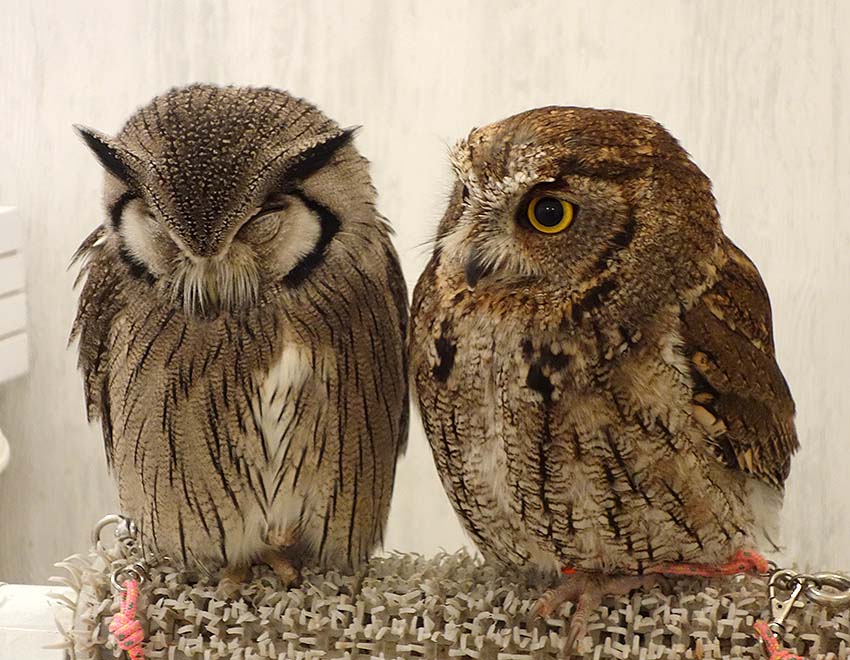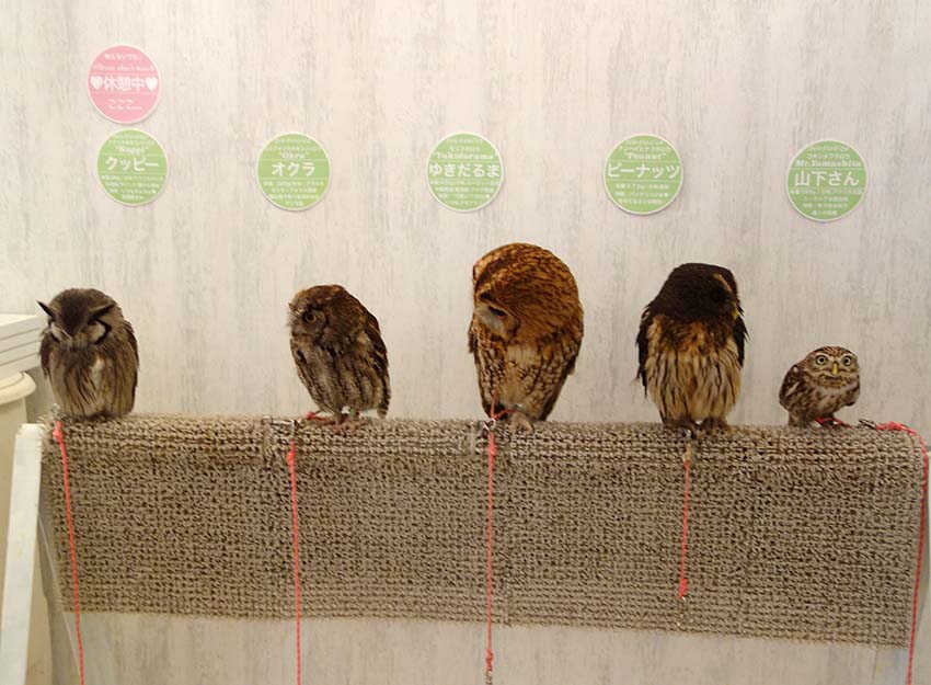 入場するとさっそく迎えてくれるフクロウ達