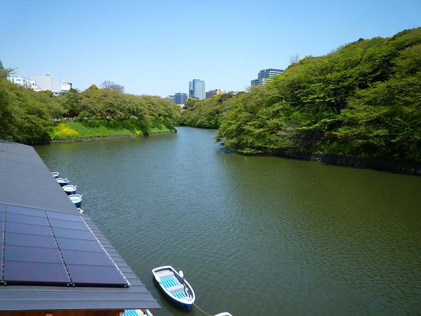 千鳥ケ淵は、四季を通じて誰もが憩える潤いのある場です。春には桜が咲き誇り、花見の一大名所として大勢の人々で賑わいます。千鳥ケ淵の名は、冬に都鳥などが多く集まるところからきたとも、V字形の濠が千鳥に似ているからとも言われています。