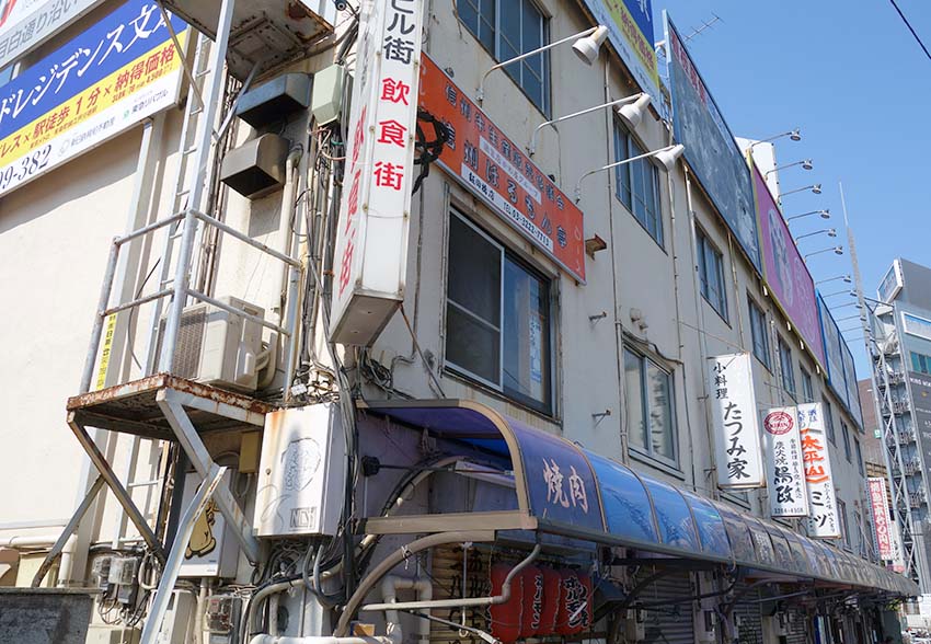 JR飯田橋駅東口前の神田川沿いに佇む昭和の雰囲気が色濃く残った飲食街です。