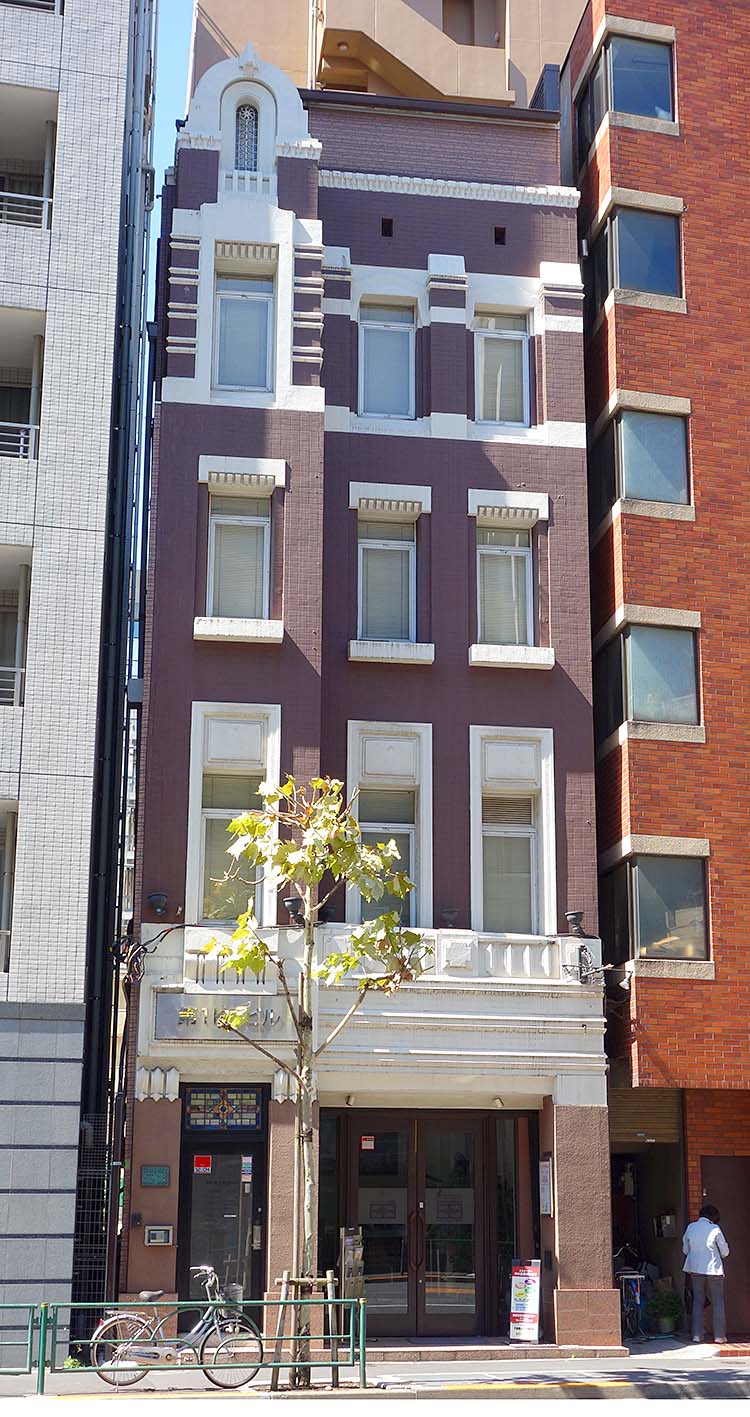 鉄筋コンクリート造、地下1階・地上5階建てのビルで、大正14(1925)年に建築されました。国の登録有形文化財にも指定されています。