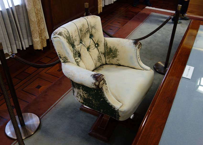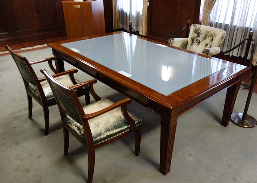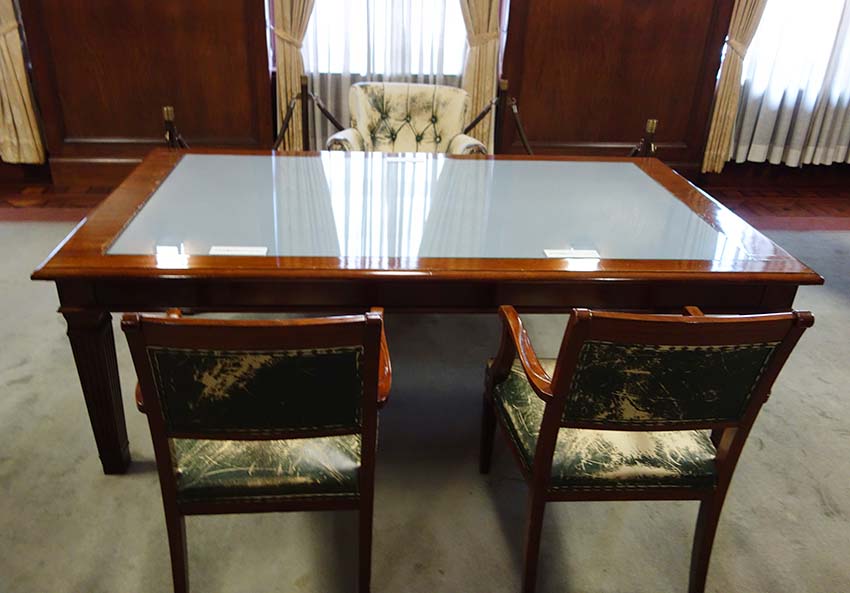 第一生命社長室として使われていたこの部屋は、日本の陸軍により接収され陸軍幹部の部屋となり、GHQ接収後マッカーサーの部屋となりました。