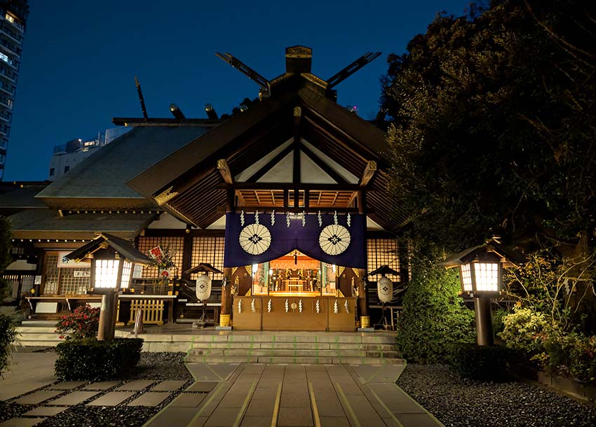 東京における伊勢神宮の遥拝殿として明治13年に創建され、「東京のお伊勢さま」とも呼ばれています。日本で最初の神前結婚式が行われた神社としても有名です。近年は女性を中心に良縁を願う参拝客で大変賑わっています。