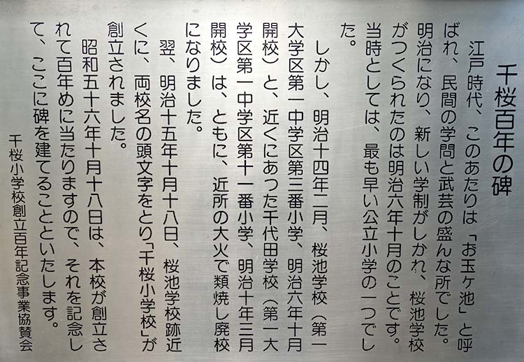 昔、この地で千葉周作が玄武館を開いて北辰一刀流の剣術を指南し、その玄武館の西隣で東條一堂が瑤池塾を開いて儒学と詩文を教授していました。