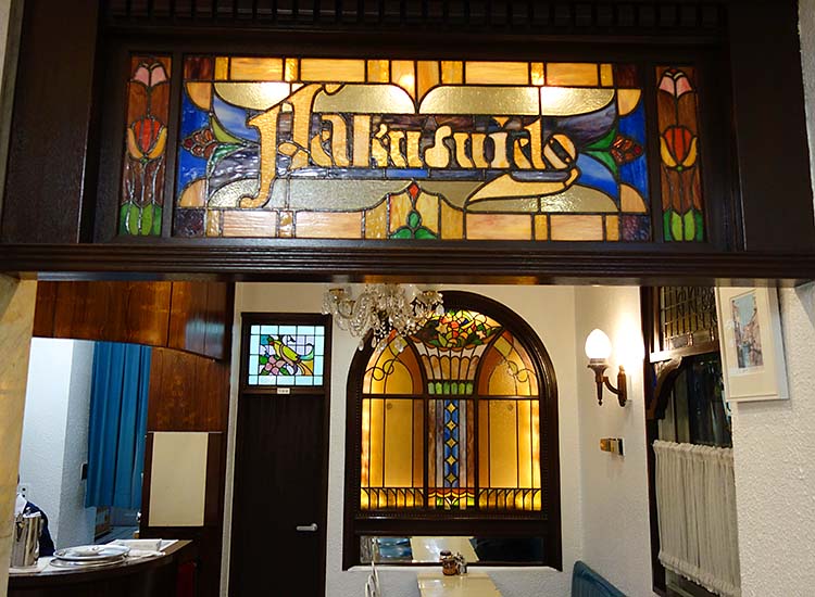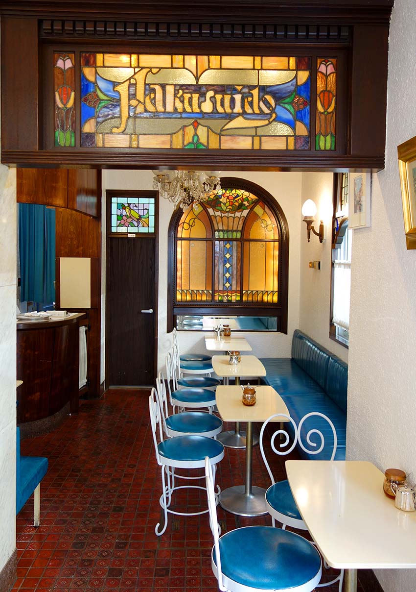 「柏水堂」は、昭和4(1929)年創業の洋菓子店の老舗です。店の奥はアールデコ調の喫茶室になっていて、創業当時から変わらないステンドグラスやランプがレトロな雰囲気を醸し出していました。