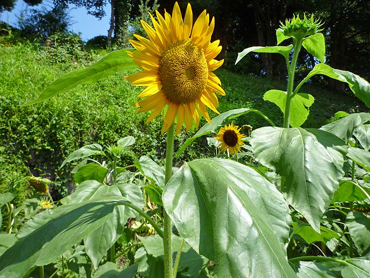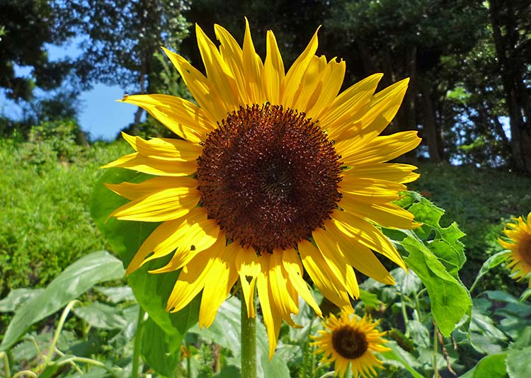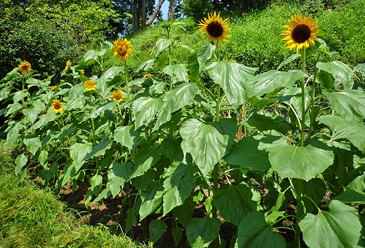 天皇皇后両陛下が阪神淡路大震災10周年追悼式典で神戸市を訪問された際、地震で亡くなった小学生の名前にちなんだ「はるかのひまわり」の種子が遺族代表の小学生から贈られました。両陛下はそれをお育てになり、採れた種子が本丸休憩所東側に播種され、このヒマワリになりました。