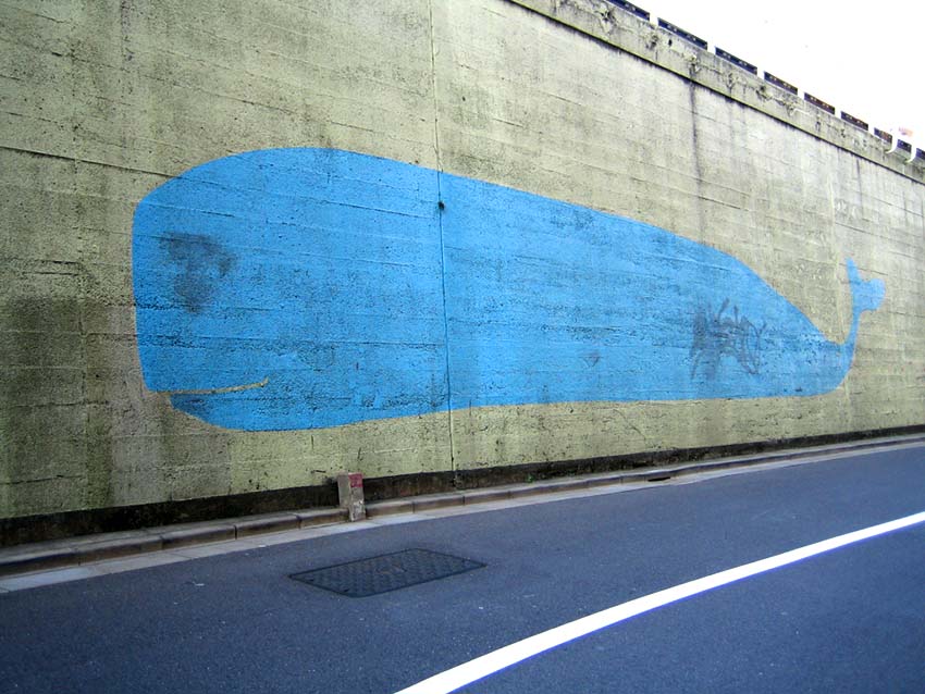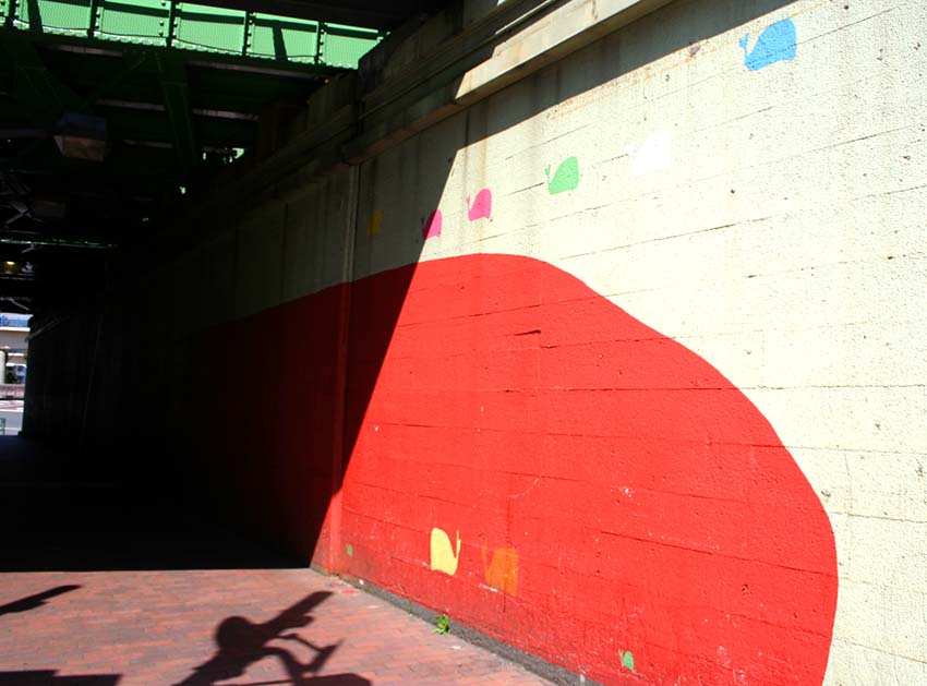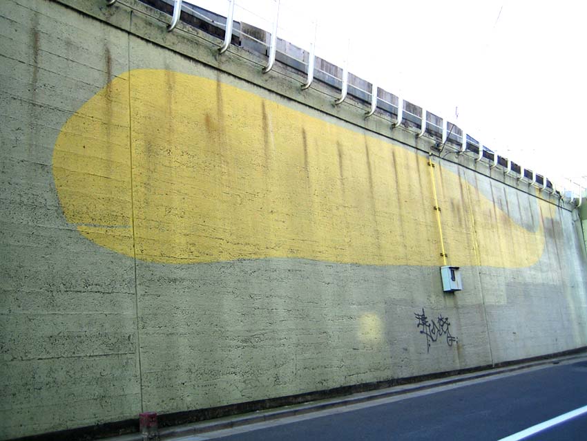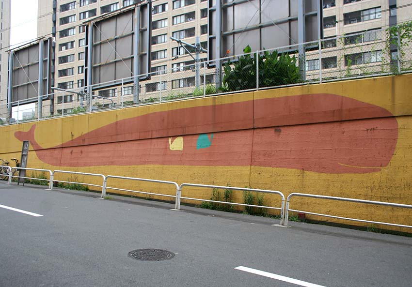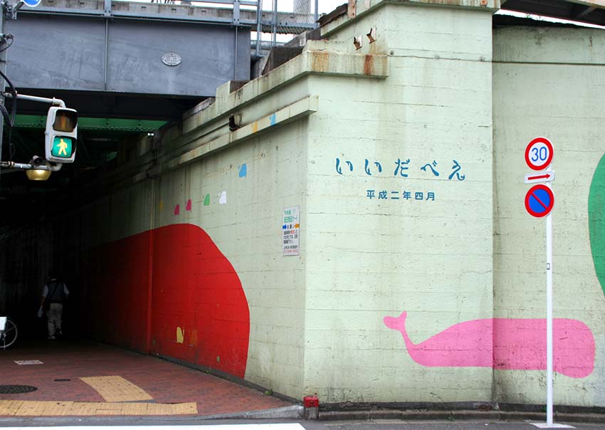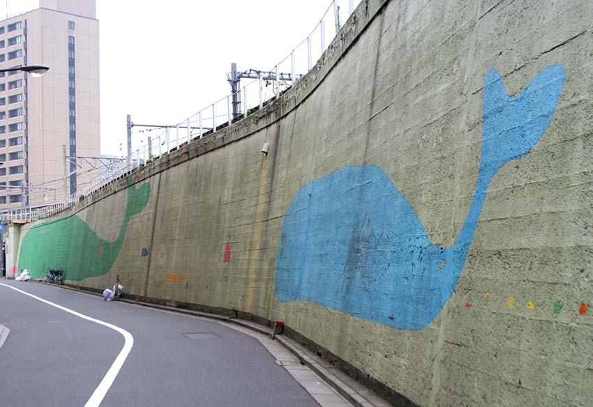 平成2(1990)年4月、武蔵野美術大学の研究グループが、JR線路沿いの横長の壁にマッチする作品として描き上げました。