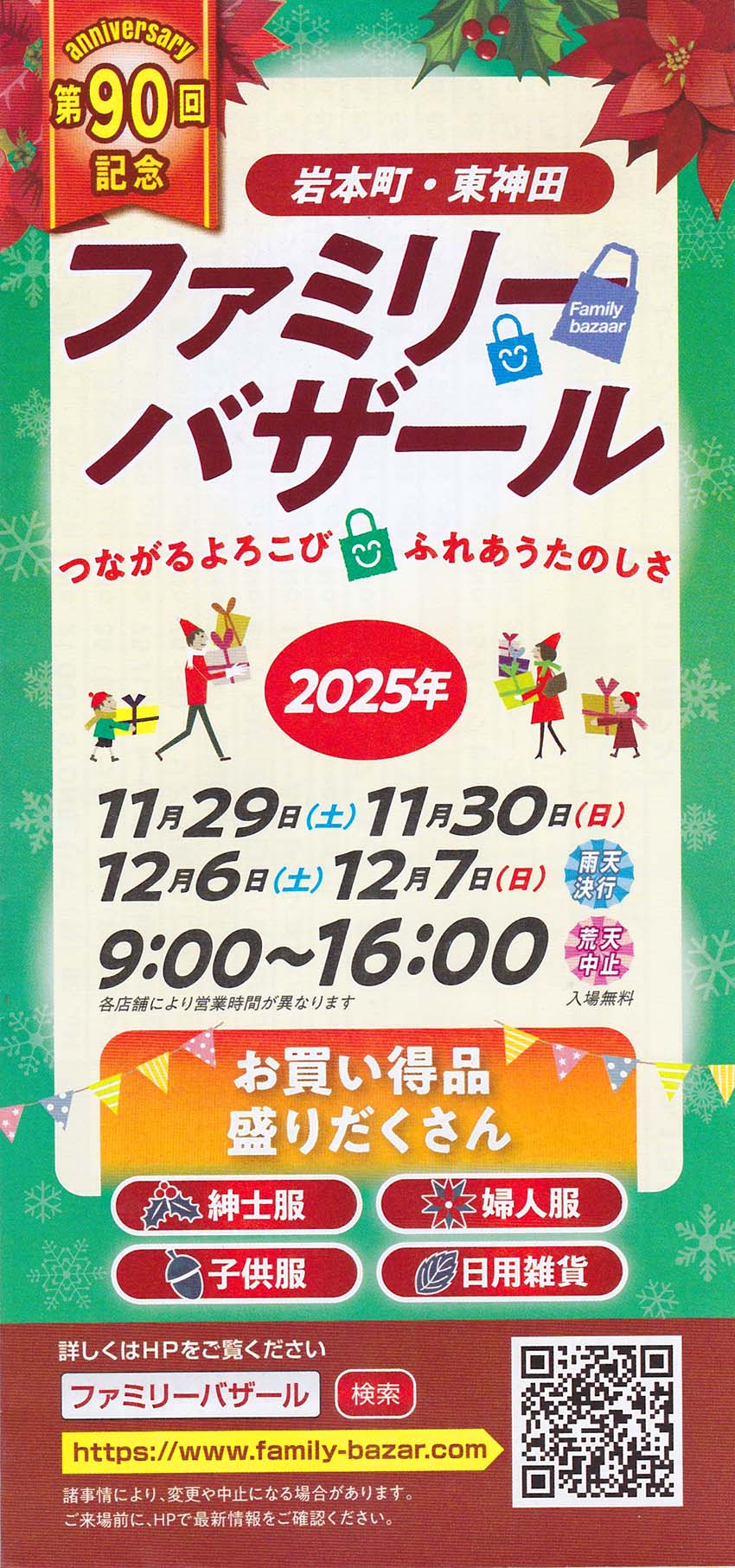 第90回の開催日は、令和7(2025)年11月29日(土)・30日(日)、12月6日(土)・7日(日)です。