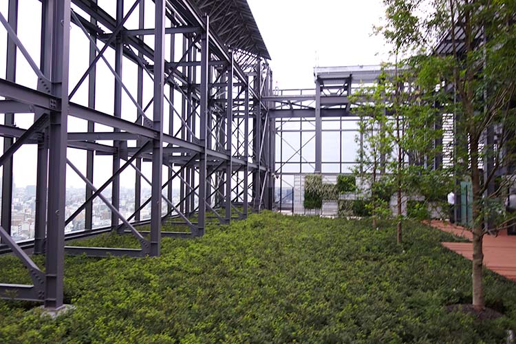 があった場所に平成25(2013)年1月に竣工しました。外装や低層部にはテラコッタが使用され、界隈の歴史性を引き継ぎ、高架下との調和が図られています。 オフィス・コンファレンス・認証保育所・店舗などが入っています。