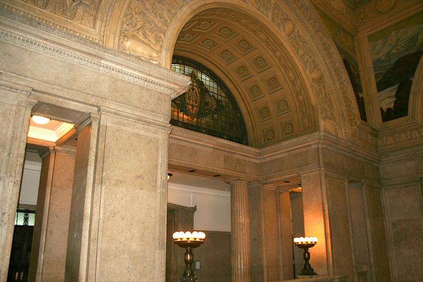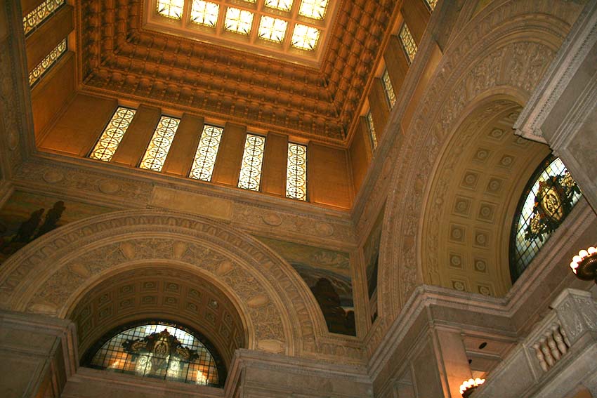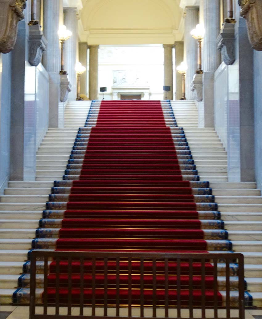 国会議事堂の中央にこの広間があります。4階までの吹き抜けになっており、窓と天井にはステンドグラスが嵌め込まれています。天井までの高さは32.62メートルあります。
