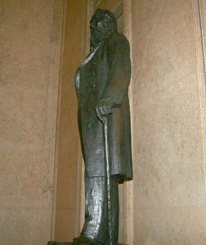 中央広間には、議会政治確立に功労のあった方々の3銅像が立っています。こちらは板垣退助氏の銅像です。