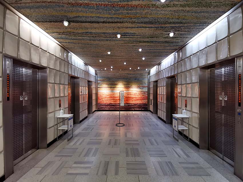 色鮮やかなモザイクによりデザインされたエレベーターホール