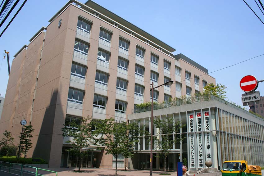 明治38(1905)年に創立された私立の女子中学校・高等学校です。校舎は地上7階・地下1階建で平成15(2003)年に建て替えられました。