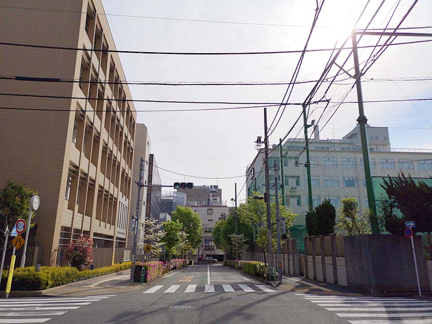 九段校舎(右)と富士見校舎(左)の間を通る区道