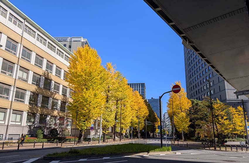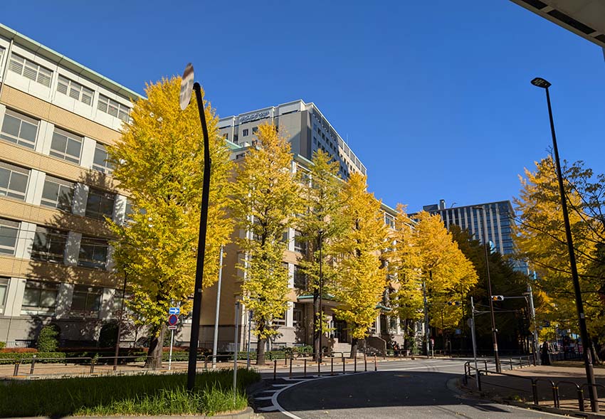 <1号館>前のイチョウ並木