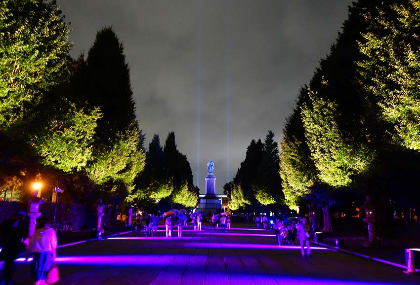 9月17日から19日まで、夜の境内を美しくライトアップする行事「みらいとてらす‐秋を彩る九段の光‐」が実施されました。