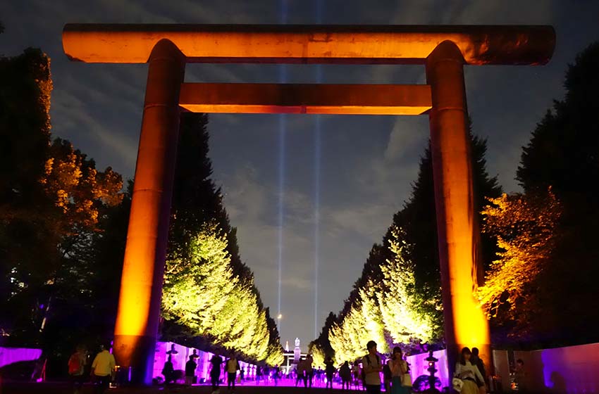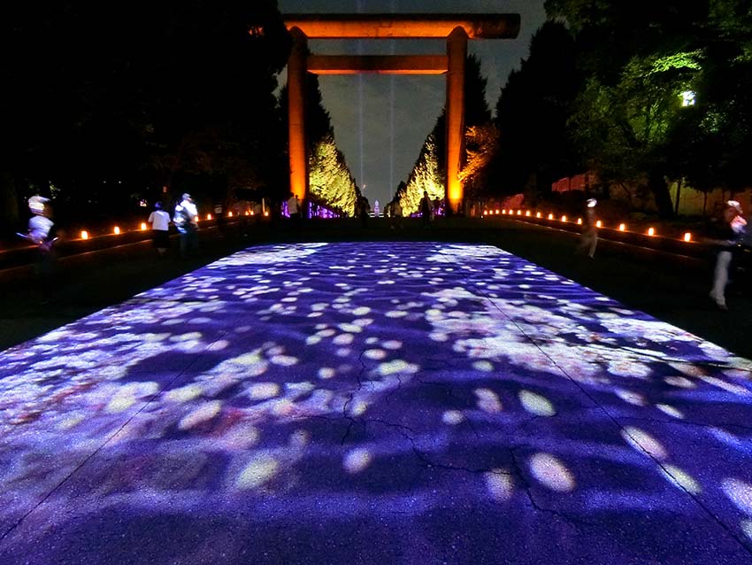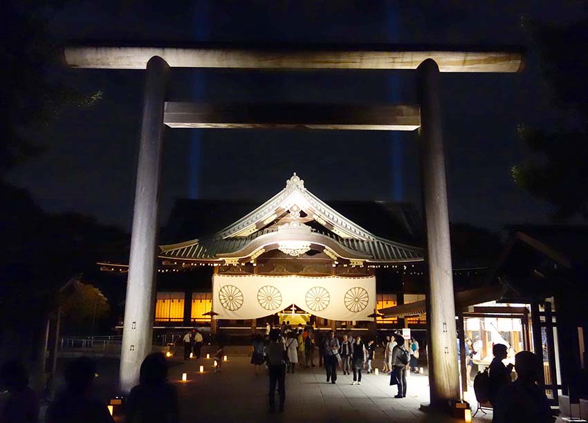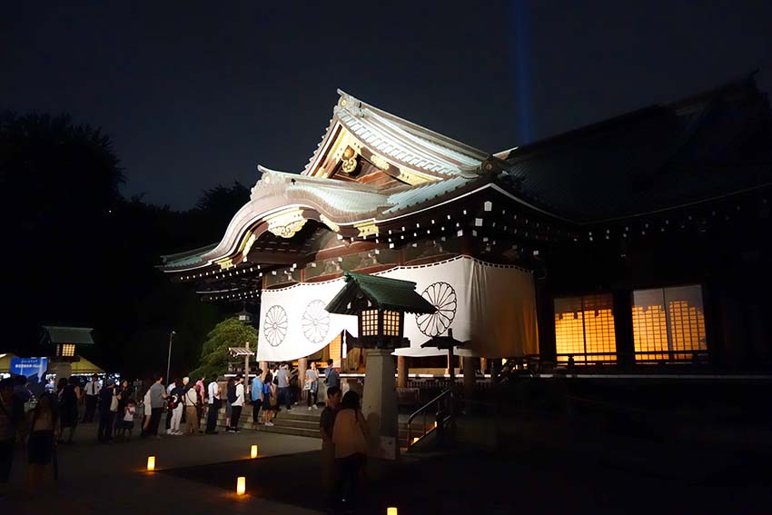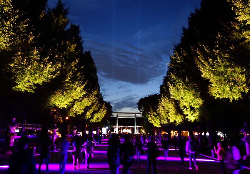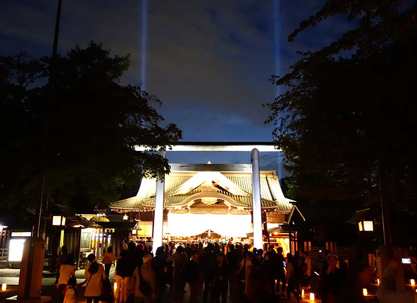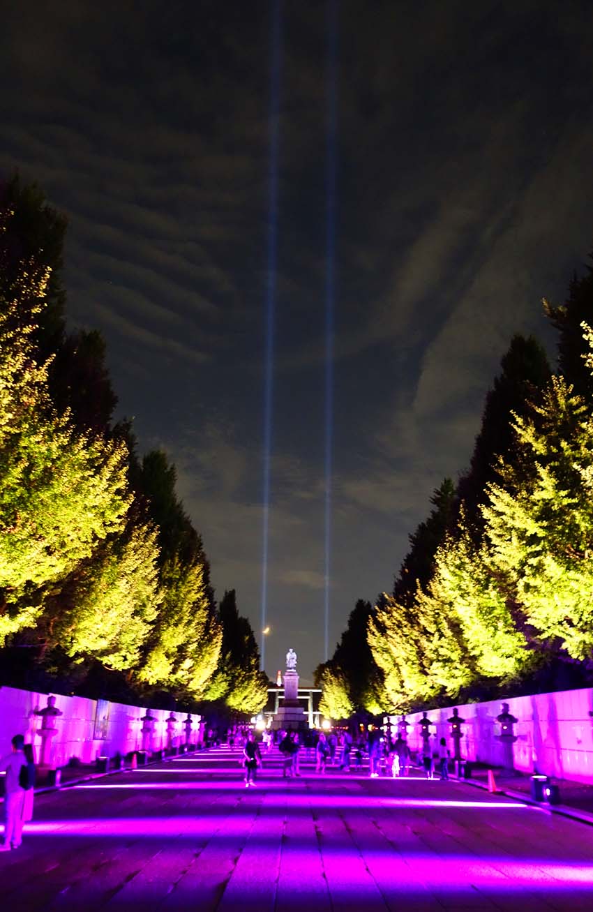 9月22日から24日まで、夜の境内を美しくライトアップする行事「みらいとてらす‐秋を彩る九段の光‐」が実施されています。