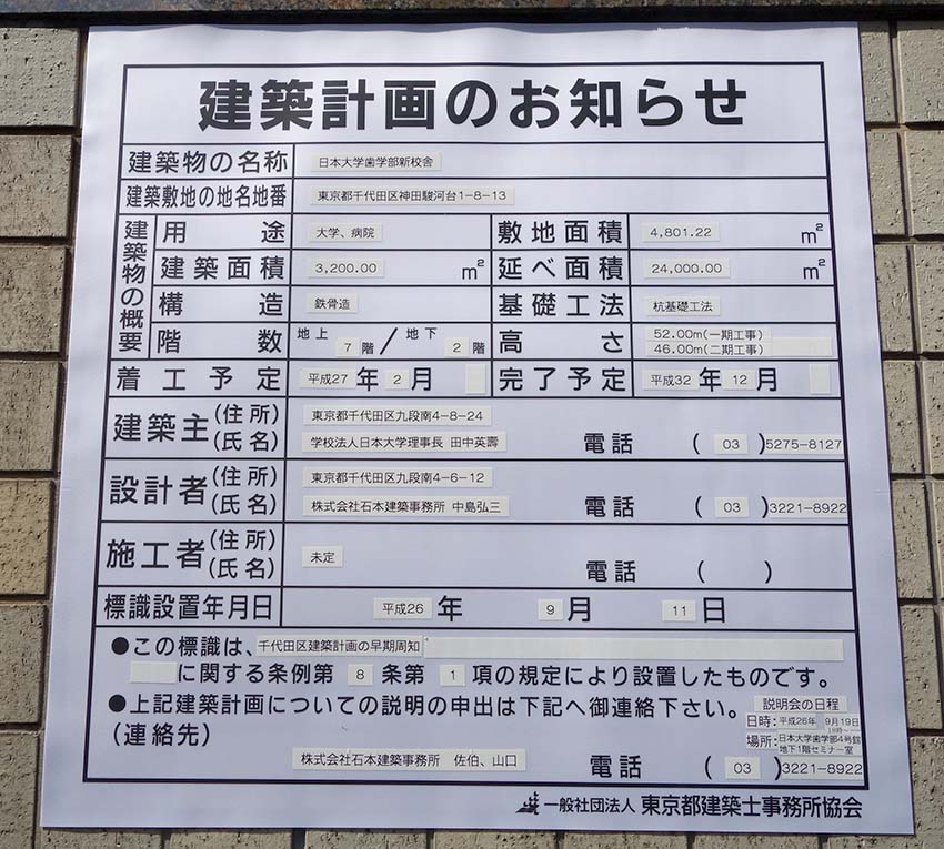 新病院の建設地には、かつて、「日本大学病院」の前身「駿河台日本大学病院」がありました。