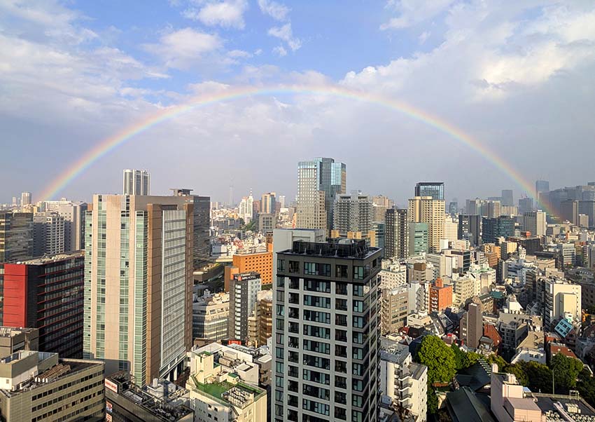 午後、雨上がりの千代田区の東の空に綺麗な虹が架かりました。