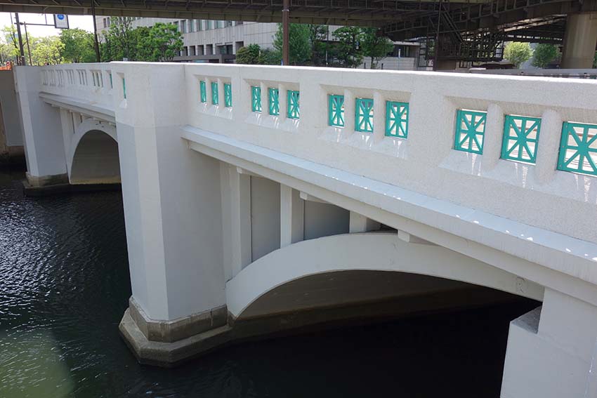 この辺りに錦町河岸があったことから橋名がつきました。平成19(2007)年3月に千代田区景観まちづくり重要物件に指定されました。