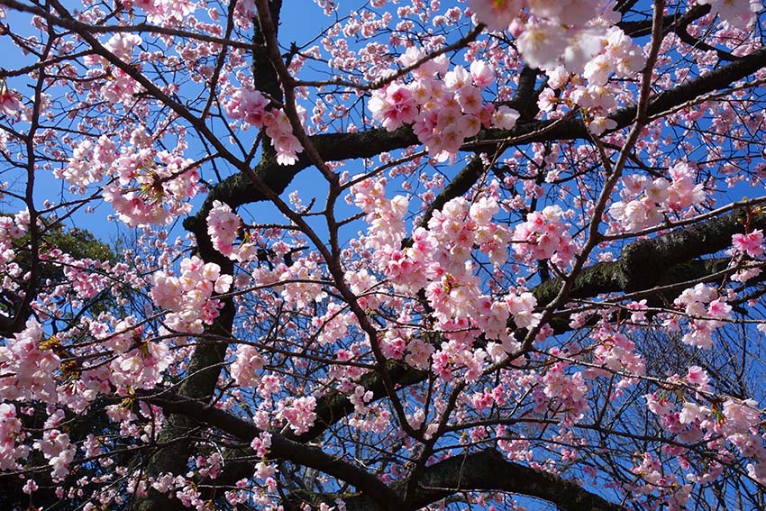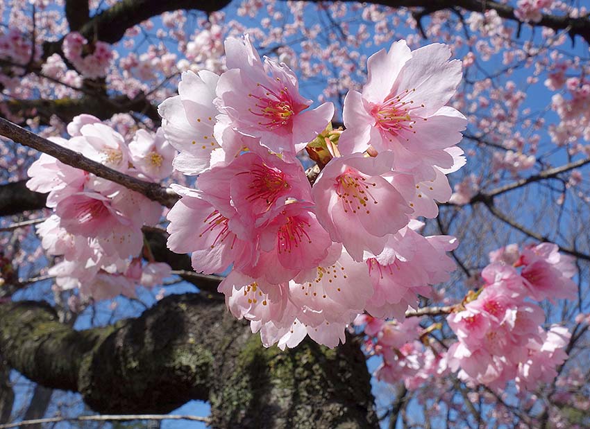 大寒桜は3月上・中旬に淡紅色の単弁(5弁)の花を咲かせます。花弁の先には細かい切れ込みがあります。