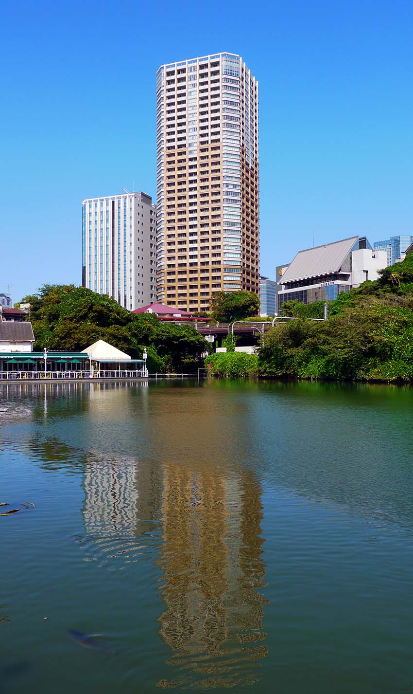 外濠<敷地南西側>から望む飯田橋プラーノ