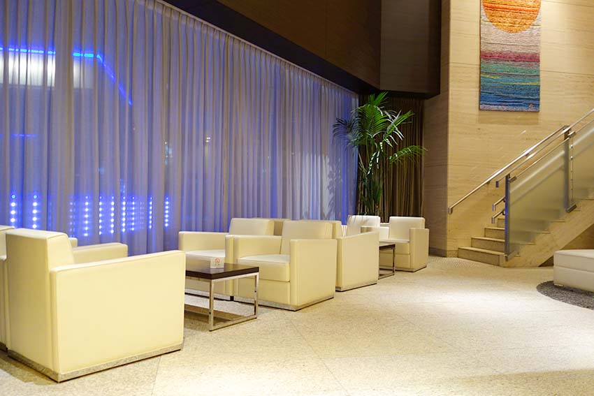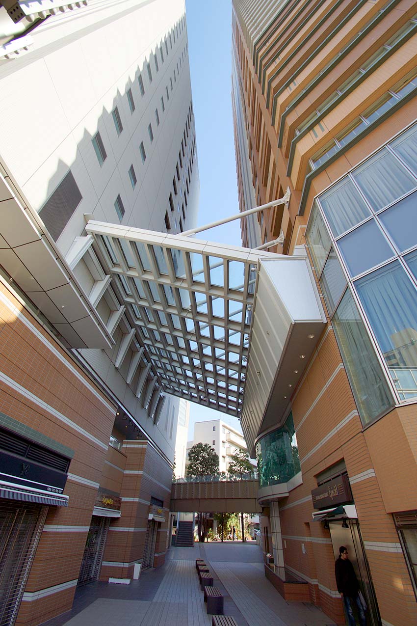 事務所棟と住宅棟を結ぶガラスの大屋根「ガレリア」