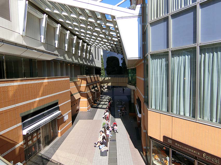 敷地北東側から望む飯田橋プラーノ、奥から「住宅棟」「事務所棟」「店舗モールC」