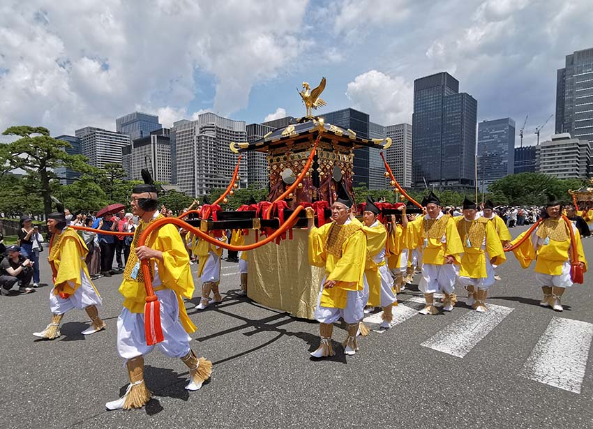 神幸祭は、山王祭 最大の盛儀で、優雅で格調高い列は、都心に絢爛豪華な王朝絵巻を繰り広げます。