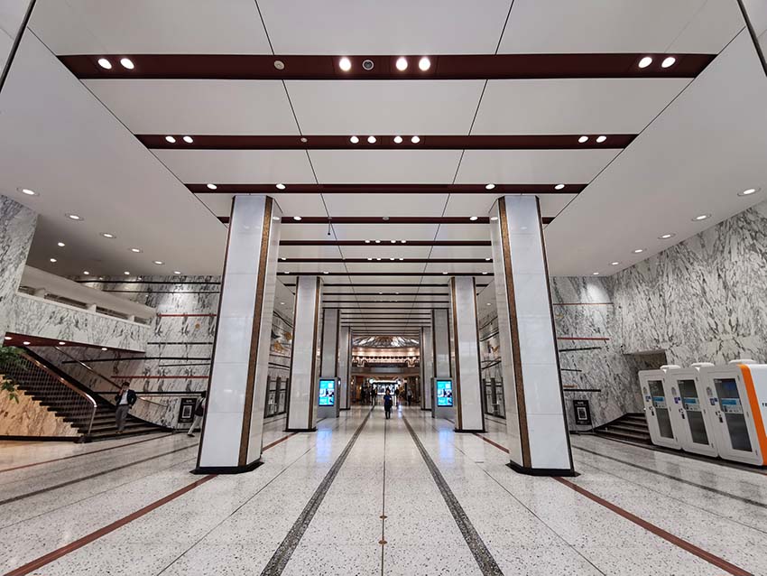 丸の内にある昭和38(1963)年に竣工した地上9階・地下4階・塔屋3階のビルです。1階には、東西を貫く太い共用通路があります。