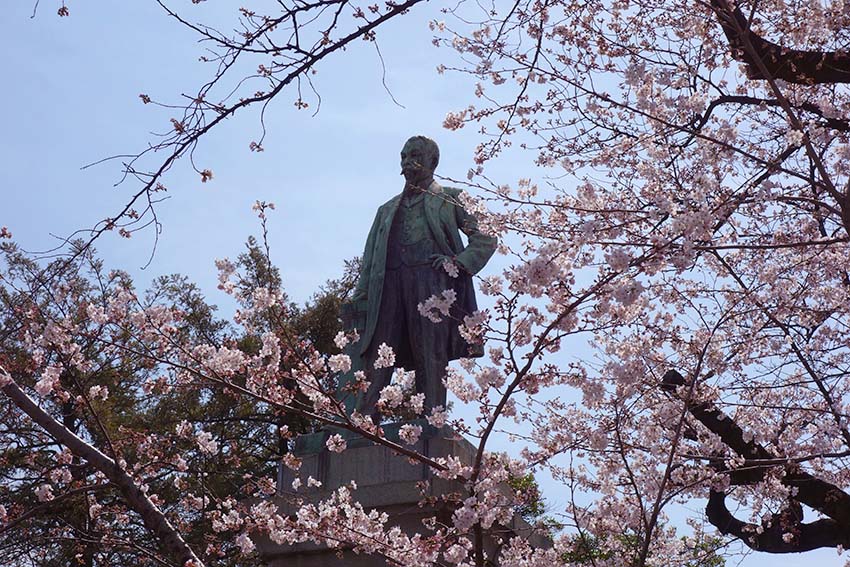 品川弥二郎は長州藩出身の明治期の政治家です。吉田松陰の松下村塾で学んだ後、尊王攘夷運動に参加しました。維新後、欧州に派遣され軍事等を学びました。銅像は本山白雲の製作です。