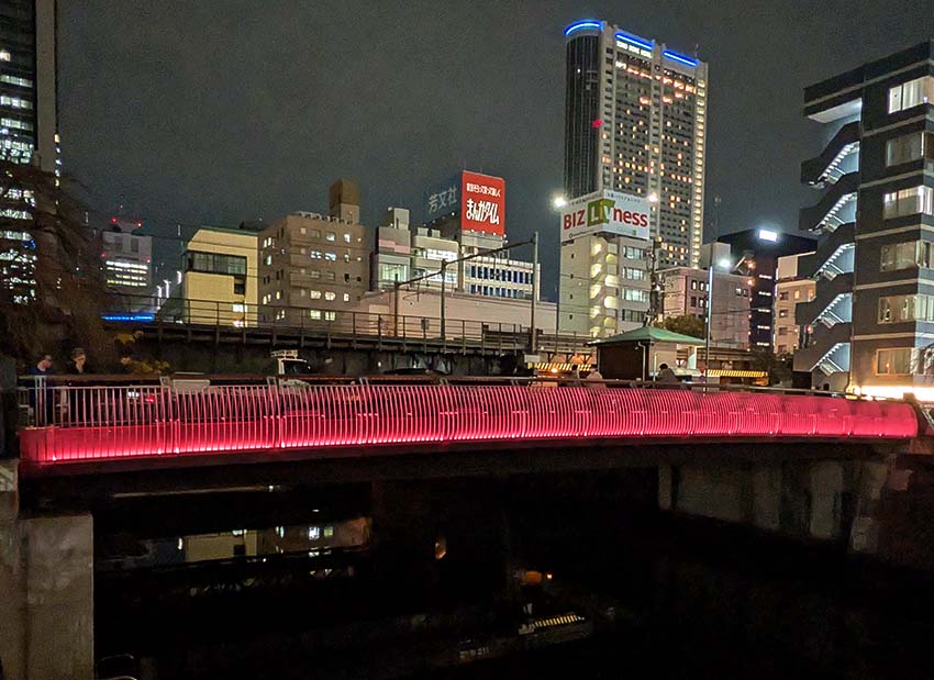 都心の貴重な水辺空間を心地よく過ごせる場、歩く目線で楽しめる場として整備する取り組みの一環として、試験点灯が行われています。期間:2025年12月1日〜2026年1月31日