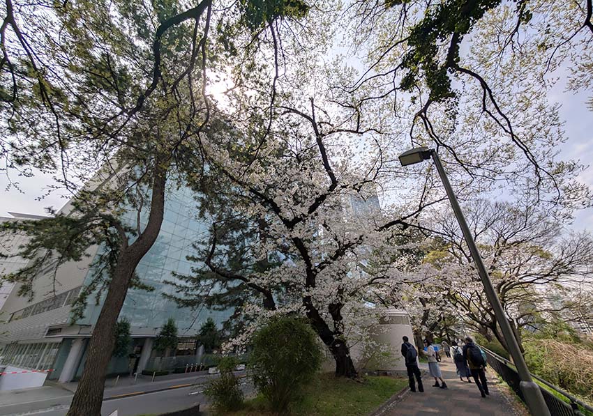 法政大学ボアソナードタワーから見た外濠公園の桜