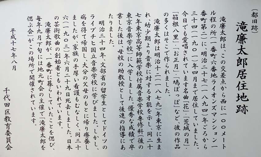 滝廉太郎居住地跡
