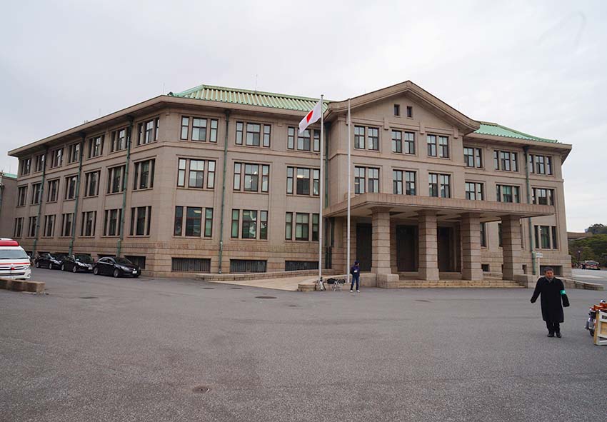 正門石橋を渡っている間、左手には皇居外苑が見えます。
