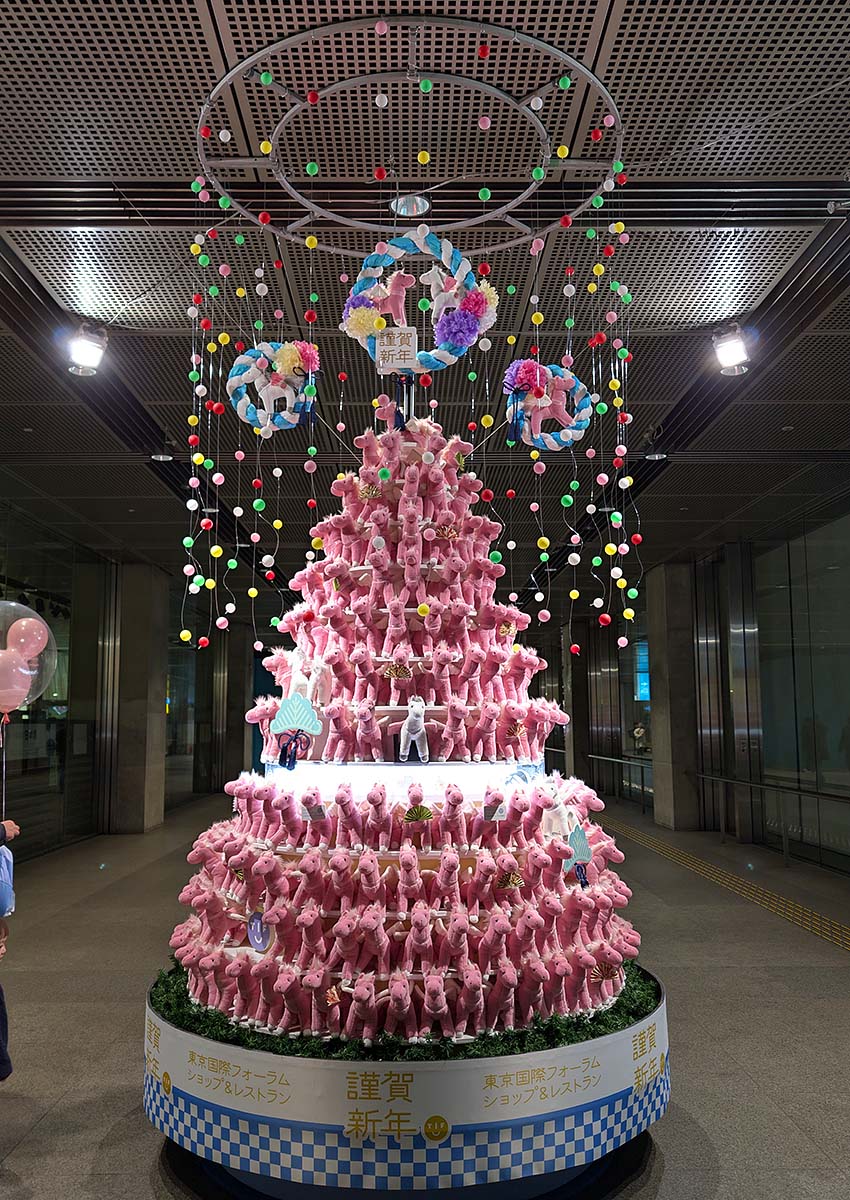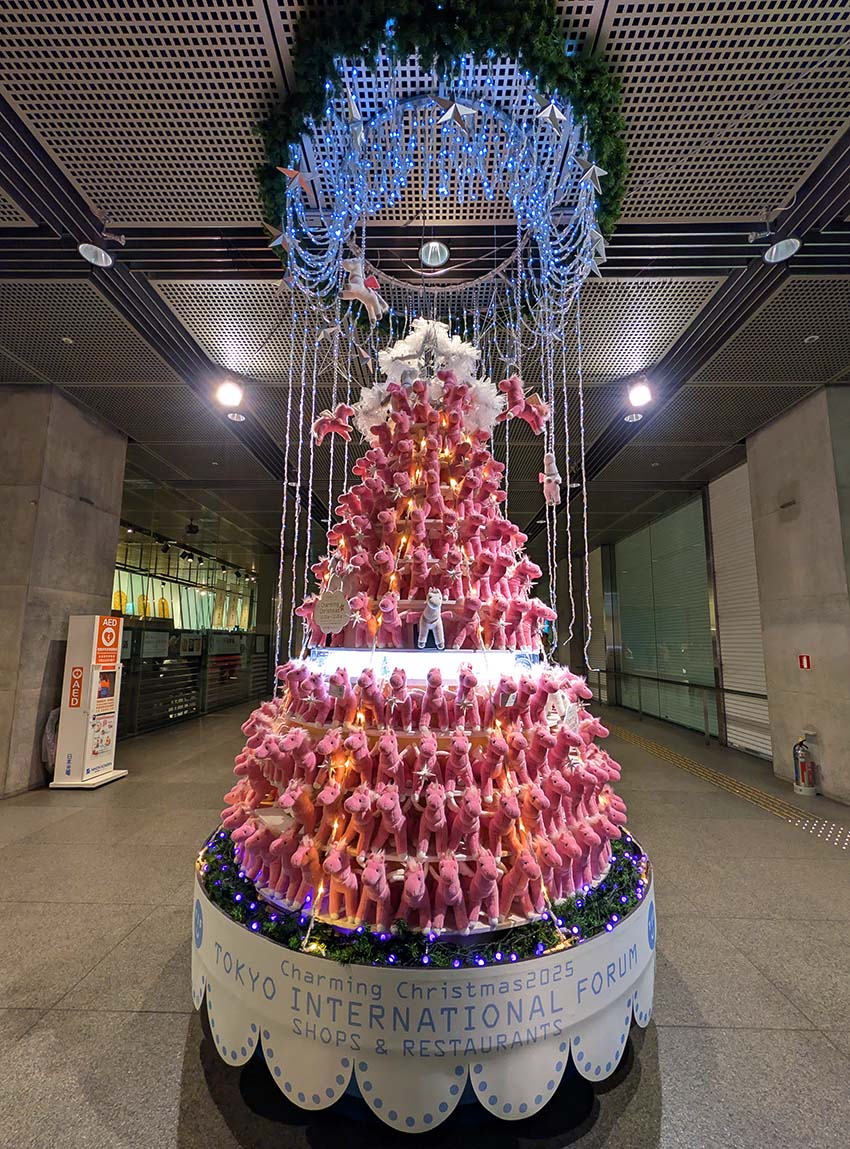 毎年12月に、東京国際フォーラムを華やかに彩る「干支ツリー」です。今年のツリーは、来年の干支「子(ねずみ)」をモチーフにしたオリジナルぬいぐるみで装飾されています。