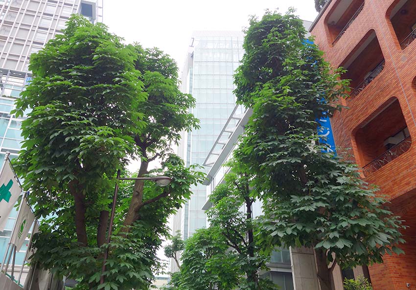 明治大学などが立ち並ぶこの通りには両側に「とちの木」が多く植栽されています。「とちの木」は落葉性の高木で、セイヨウトチノキは、フランス語で「マロニエ」と呼ばれています。