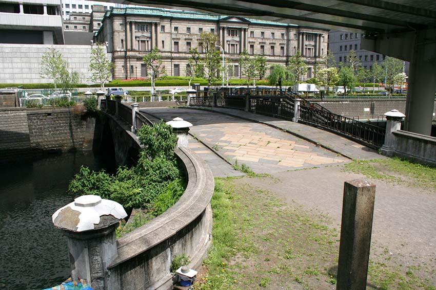 上は首都高速都心環状線・下は日本橋川・正面は日銀本店