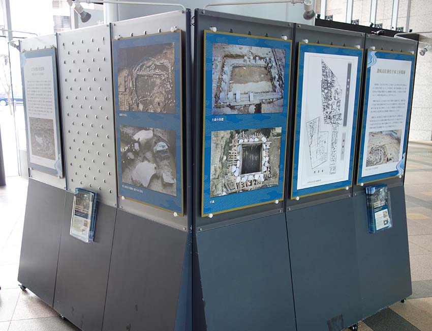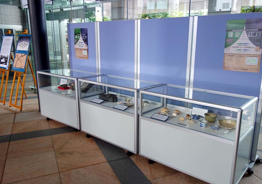 1階エントランスホールにおける企画展示「江戸城外堀と大名屋敷跡 ―飯田町遺跡を中心に―」