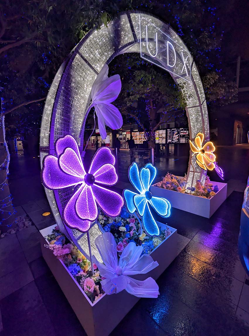 今年のテーマは「Blooming UDX〜未来へつなぐ、花と光のメッセージ〜」です。花と光が織りなす幻想的なひとときを楽しめます。開催期間:2025年12月10日〜2026年1月23日