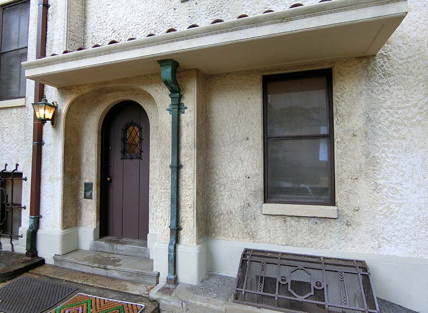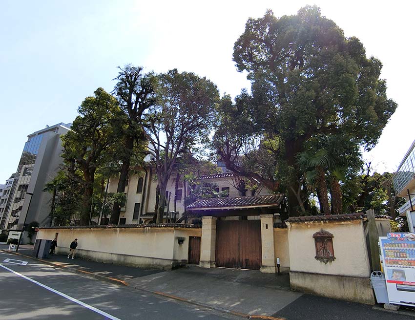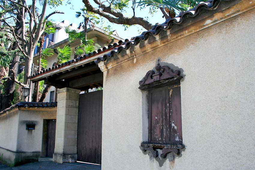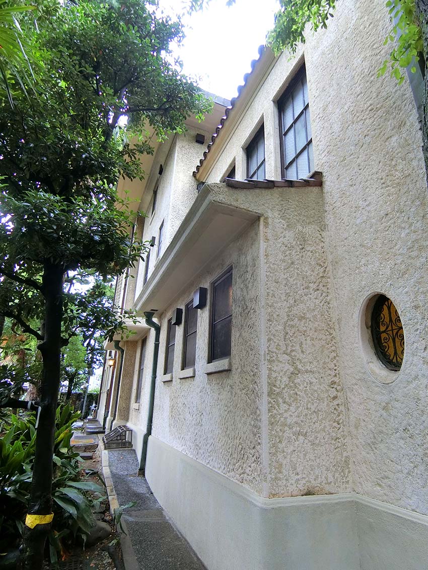 などが軒を並べる一大学園都市となっています。その一角で威容を誇るのが、この旧山口萬吉邸です。鉄筋コンクリート造地下1階・地上3階の昭和初期のスパニッシュ様式の洋館で、窓や屋根瓦・柱などがお洒落で素敵です。内藤多仲、木子七郎、今井兼次という日本を代表する3人の建築家によって建てられました。竣工は昭和2(1927)年です。平成30(2018)年5月に国の登録有形文化財に認定されました。