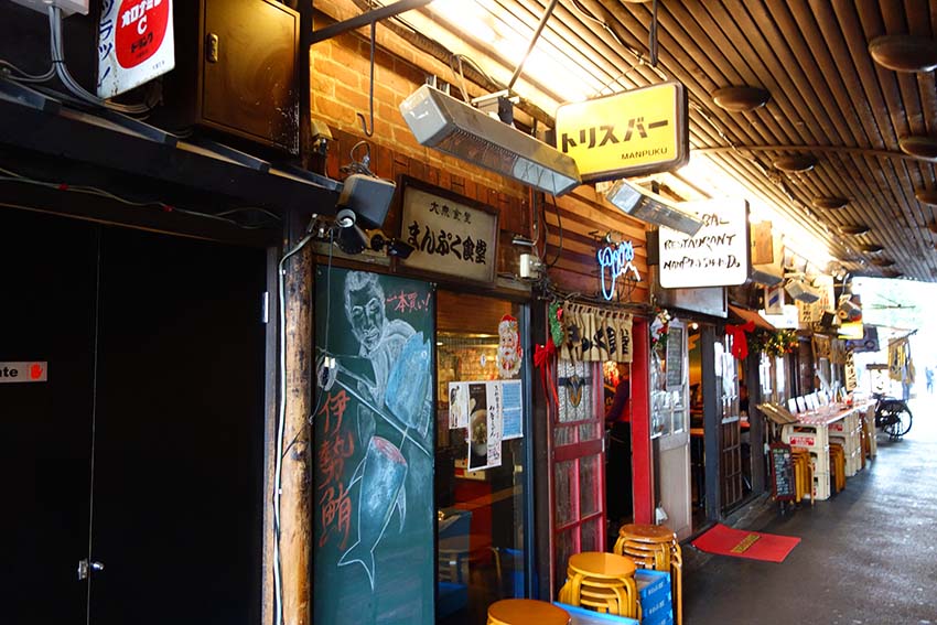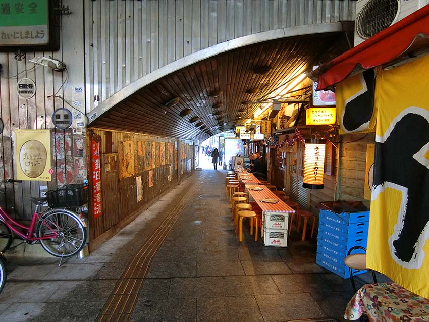 JR有楽町駅そばのJRガード下(晴海通り沿い)にある飲食店街です。レトロな看板やポスターが掲出され、昭和テイストが満載です。