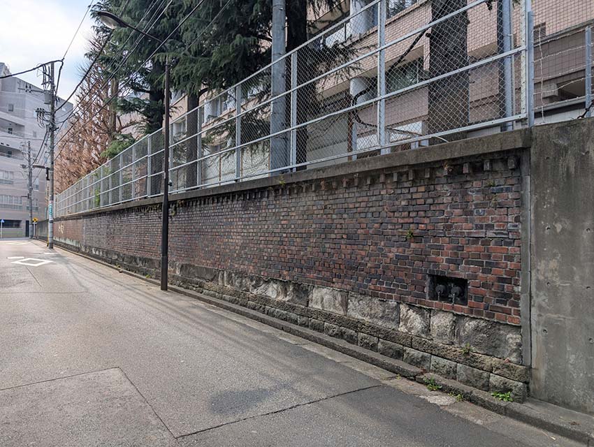 塀と講堂は、平成15(2003)年6月、千代田区景観まちづくり重要物件に指定されましたが、講堂は建て替えのため、平成24年8月に指定を解除されました。