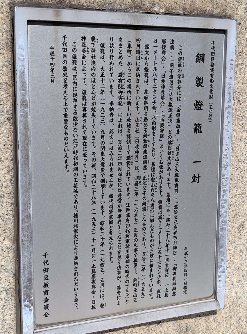 「銅製燈籠」説明板