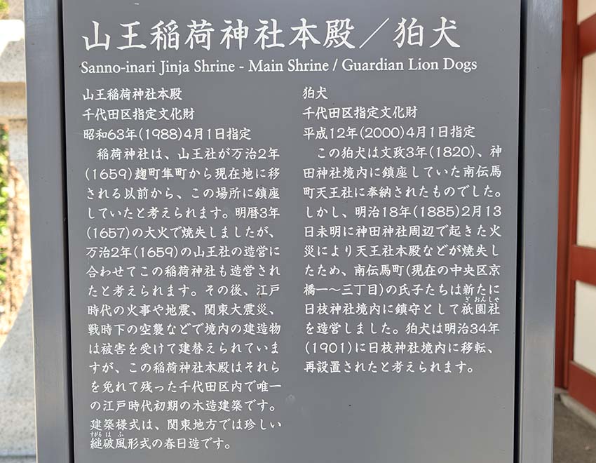 「山王稲荷神社本殿・狛犬」説明板