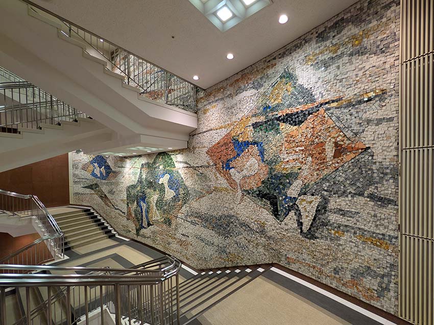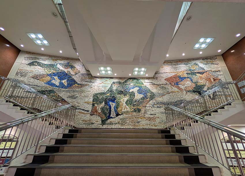 モザイク壁画 矢橋六郎氏の作品「緑の散歩」