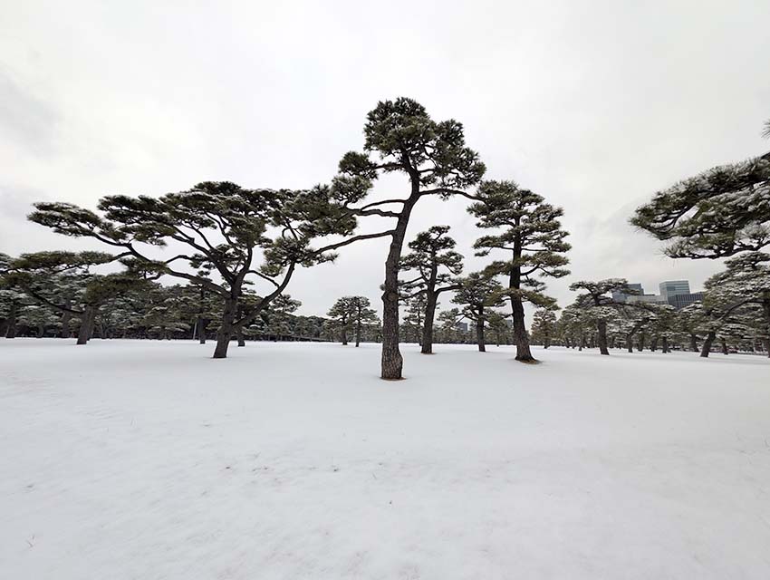 皇居前の大芝生広場には約2,000本のクロマツが植栽されています。都心の中の都心でありながら、広々と拡がる緑の空間は人々に安らぎを与えています。