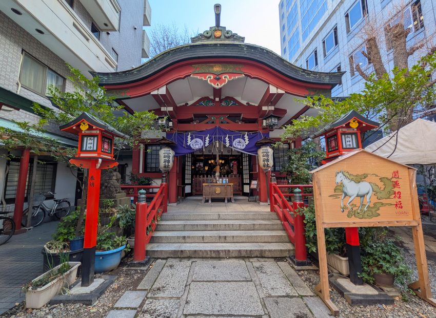創建は詳かでないが建久以前、仁安の頃とも伝えられる。当時の神田山(現、駿河台)の山麓(現、本郷一丁目)武蔵国豊島郡三崎村に鎮守の社として祀られたとされ、その後幾多の変遷の後、明治三十八年現在地に遷座される。<東京都神社庁ウェブサイトより>