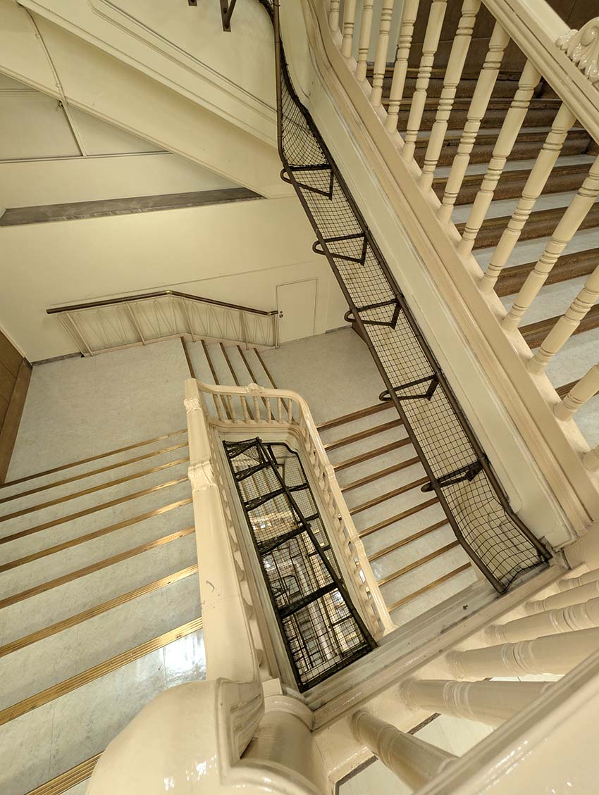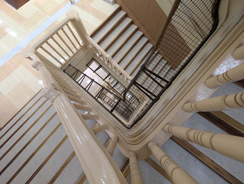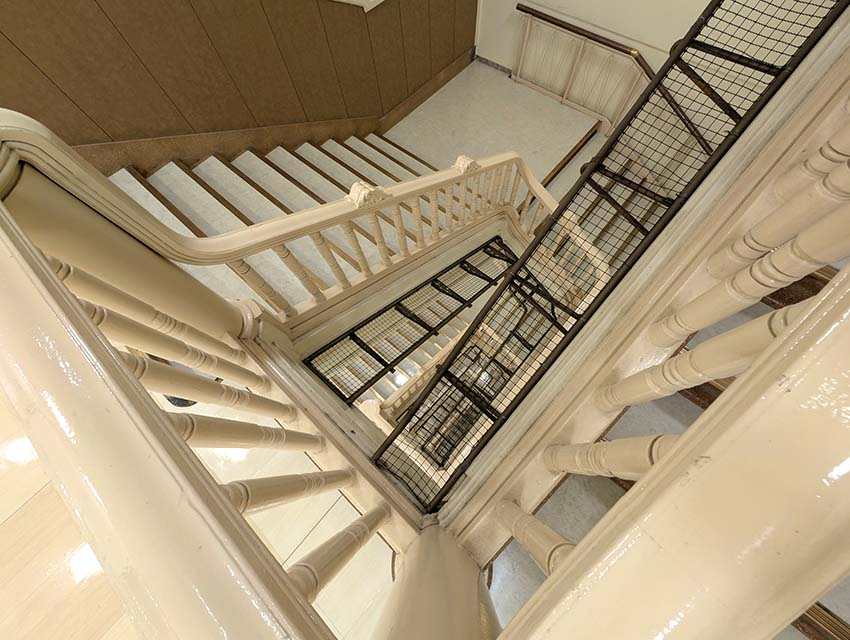 オフホワイトの色合いを基調とした とても上品で気品のあるクラシック階段です。