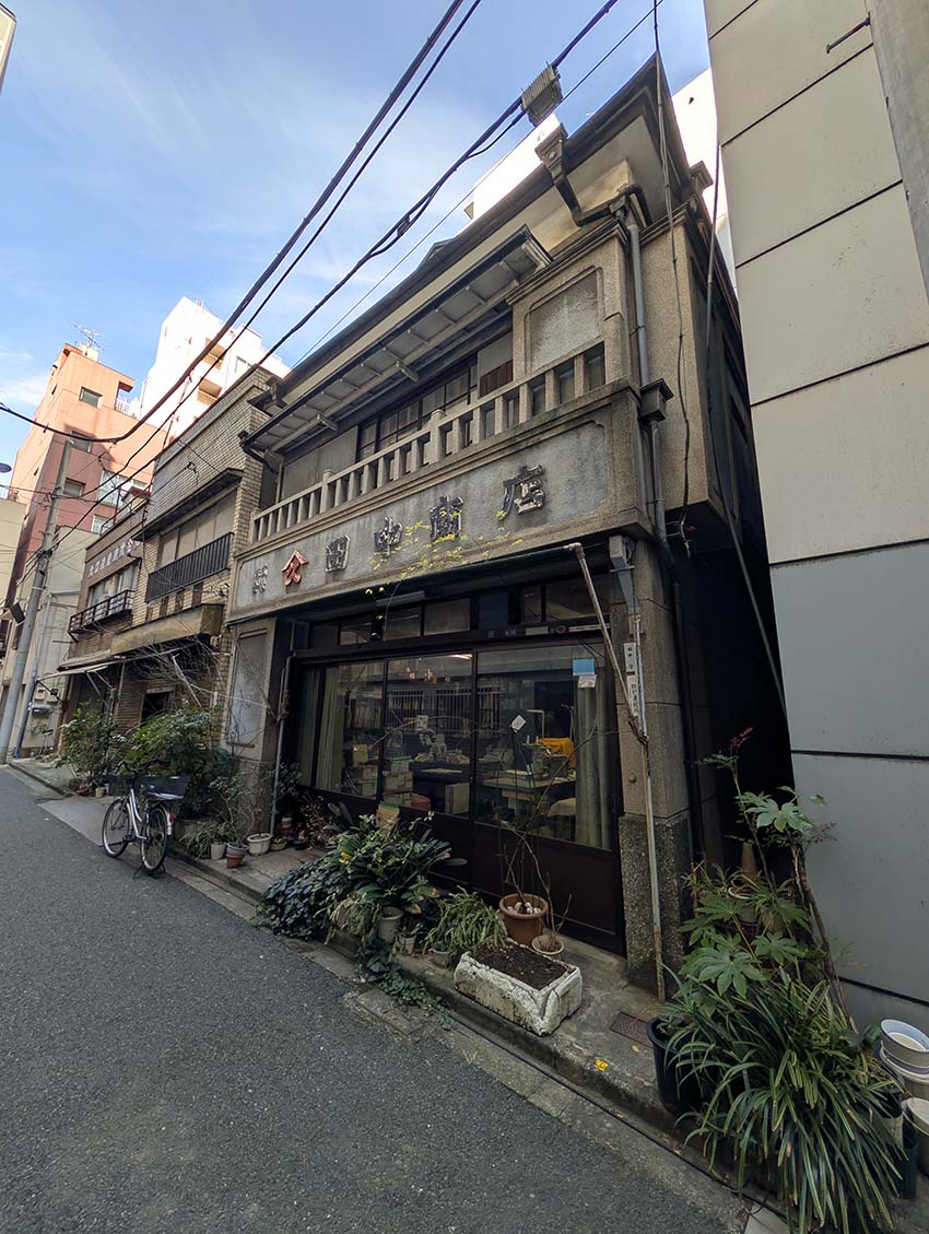 建物は越後の大工小野三兄弟によって建てられ、昭和28(1953)年に竣工しました。2階の窓には角型の欄干が設けられ、その下に屋号、店名を付けた貼り出しがあります。また、2 階の軒は白く塗られ、屋根の雨樋には枡に家紋を付けるなどの装飾がされています。令和6(2024)年12月23日に千代田区景観まちづくり重要物件に指定されました。